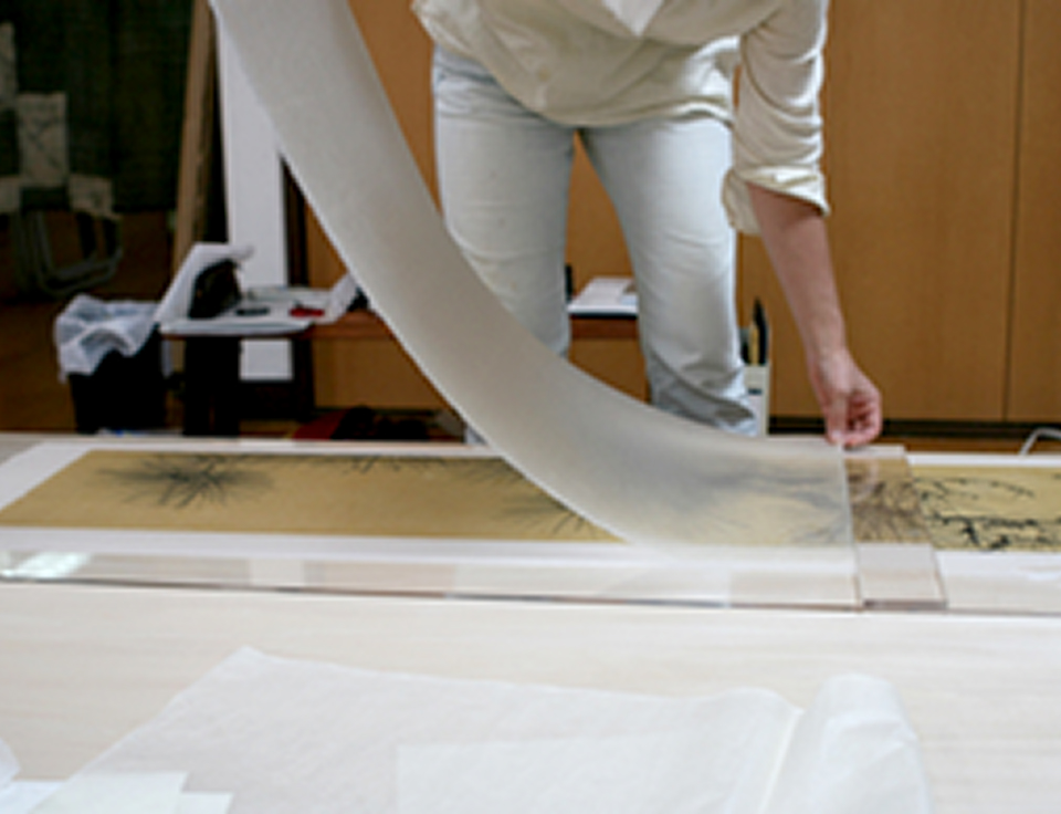 【書・裏打ち紙の除去】