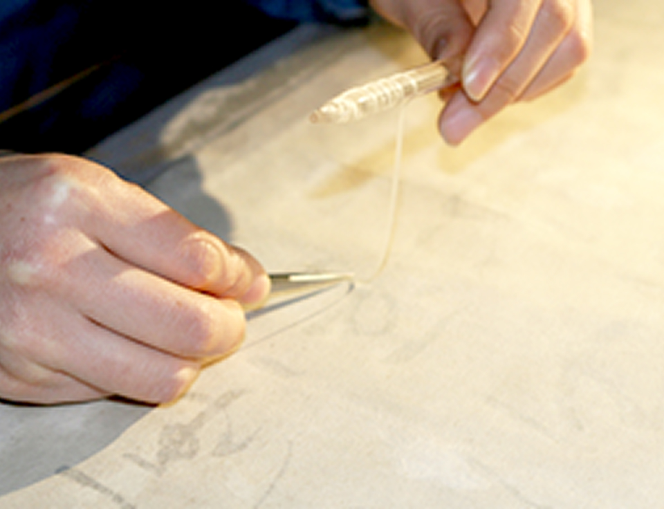 本紙の修復後、掛軸に仕立てる。