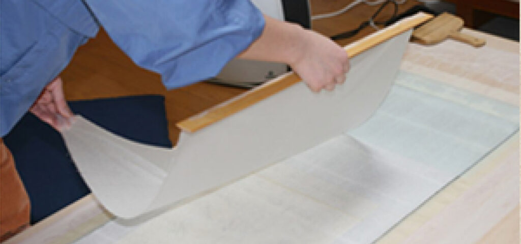 宇陀紙に古糊を付けて持ち上げている。