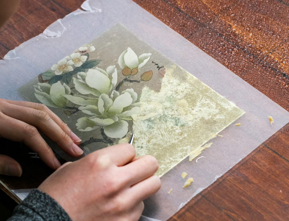 伝統的な手法により、作品に負担が掛からないように心掛けて修復をします。