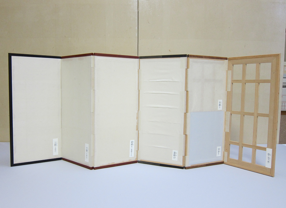 屏風の内部は骨に7層の紙を貼った下貼り層になっている。