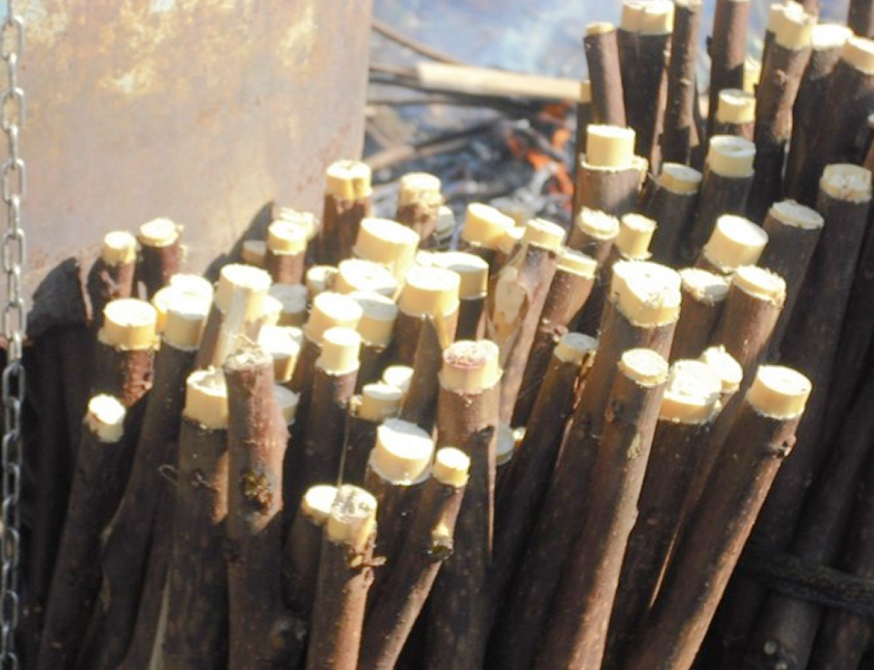手漉きの作業では、繊維を取り出すため、アルカリ性の溶液で楮を煮るのですが、昔ながらの製法として木灰やソーダ灰を使用することで繊維をほぐすことができます。木灰は文字通り薪を焼いた際に生じる灰で、天然由来の原料になります。